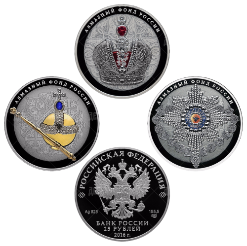 Алмазный фонд 2016 в специальном исполнении, набор из трех монет, 25 рублей.