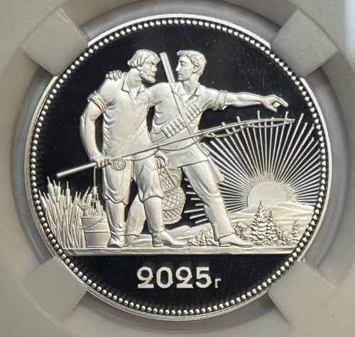 ГлавнаяКаталог монетМонетовидный серебряный жетон Рубль 2025г., "К 105-летию декрета СНК РСФСР ОБ ОХОТЕ" ТИРАЖ 100 шт.,AG 925, в слабе ННР PROOF 70