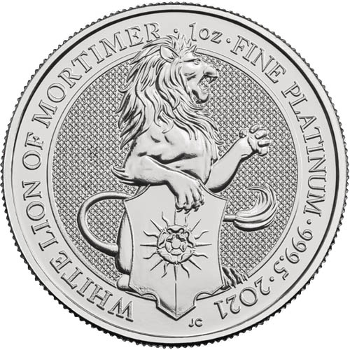 Платиновая монета 100 фунтов "Лев Мортимера", 2021 г., 31.1 гр. Pt999 Звери королевы