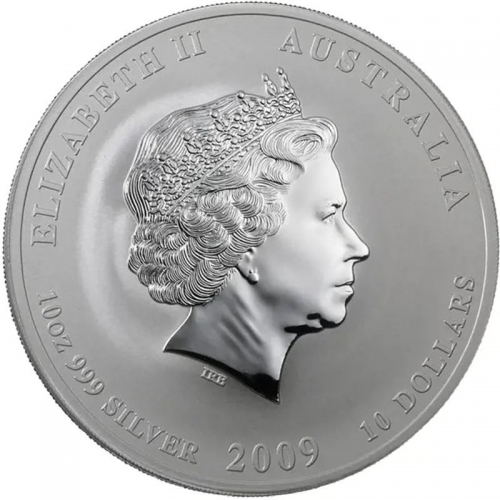 Серебряная инвестиционная монета Австралии 10 долларов "Лунный календарь II -Год Быка" 5 унций(oz) 2009 год