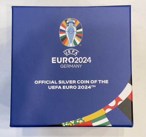 Серебряная монета 10 долларов в виде футбольного мяча посвященная Чемпионату Европы 2024г. в Германии, Соломоновы Острова, 93,3г., 3OZ, ТИРАЖ 2024 шт, Ag 999