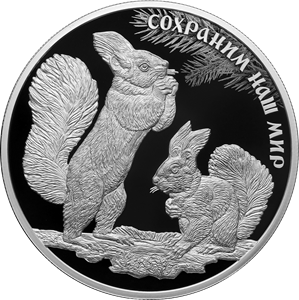 Серебряная монета 25 рублей "Белка обыкновенная" 155,5г., Ag 925, 2023г., Proof
