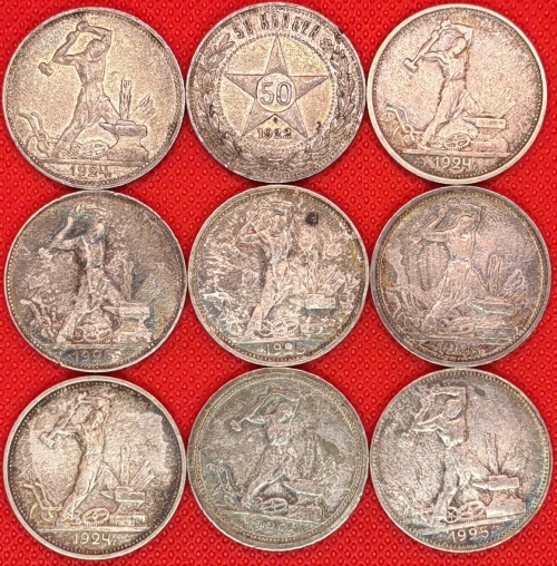 Серебряная монета 50 копеек 1921-1927 гг., Ag 900, 10 г.