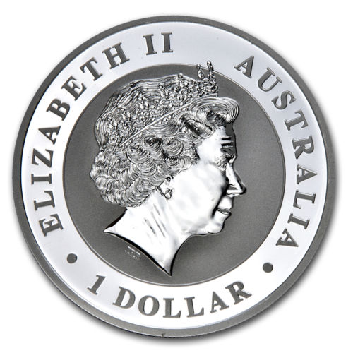 • На аверсе монеты Кукабарра изображена английская королева Елизавета II. Портрет окружен надписью “ELIZABETH II  AUSTRALIA  1 DOLLAR”.