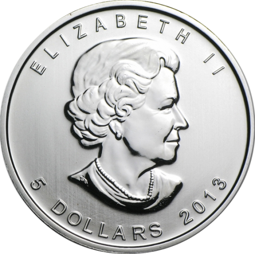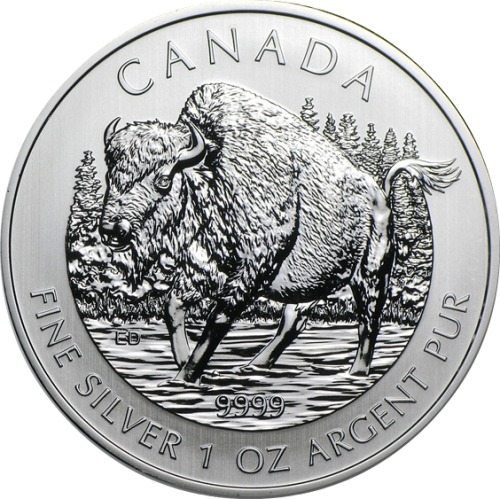 • Серебряная унцовая  монета бизон, 5 долларов Канада. 2013г.