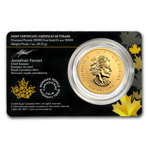 Золотая монета 200 долларов "Олень" Канада 1 унция(oz) 2017 год
