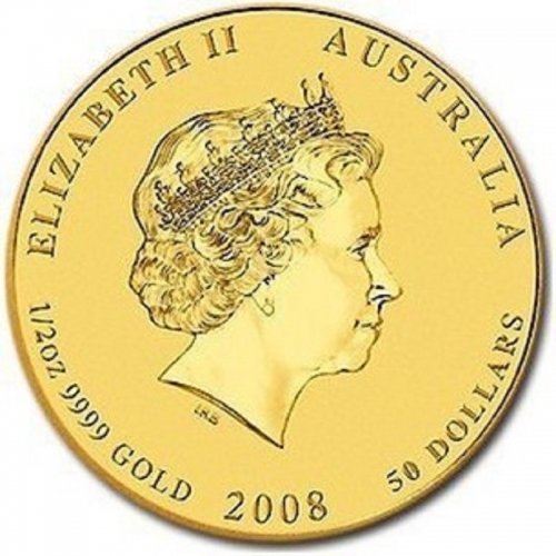 Золотая монета 50 долларов "Лунный календарь 2- Год Крысы" 2008 год 1/2 унции