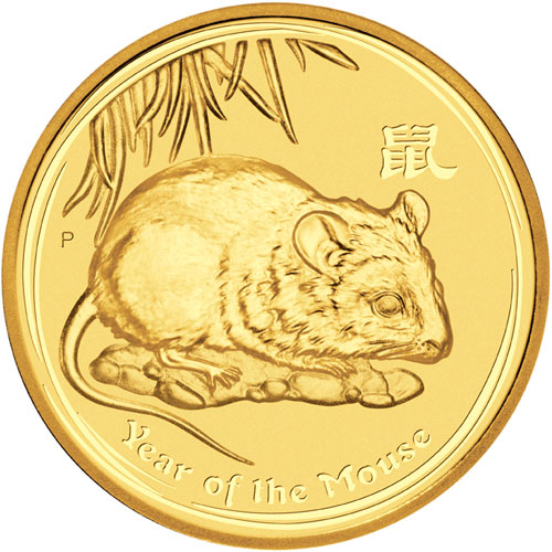 • Золотая монета из серии "Лунный календарь" - год Крысы выпущена Пертским монетным двором в 2008 году. Ограниченный тираж.