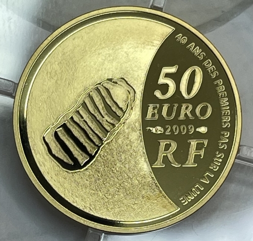 Продолжает астрономическую тематику Французская Республика. Дело в том, что в 2009 году отмечается еще и 40-летний юбилей первой высадки человека на Луну. Парижский монетный двор выпустил первую в мире серию монет выпуклой формы, запечатлев след ноги астронавта в металле.