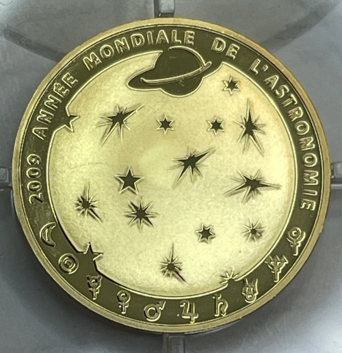Золотая монета 50 евро "Международный год астрономии" 2009 год, Франция, Au 920, 8,48г.