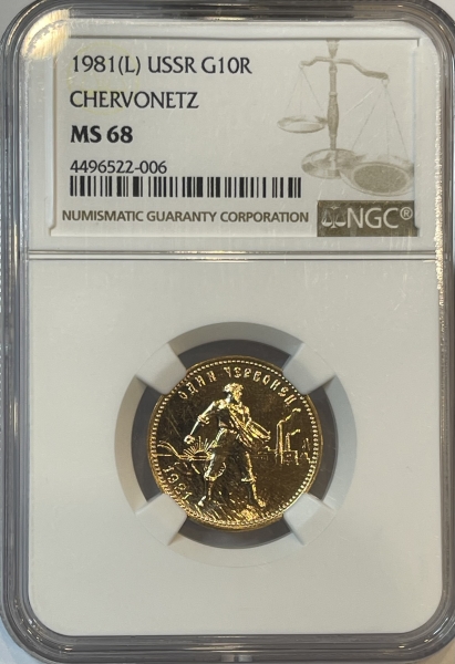 Изображение крестьянина-сеятеля на фоне плуга, восходящего солнца и заводов; по краю монеты точки, вверху надпись - «ОДИН ЧЕРВОНЕЦ», внизу слева — год выпуска - 1981.