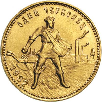 Золотая монета "Червонец Сеятель" 1982 год ММД 8,6 грамм