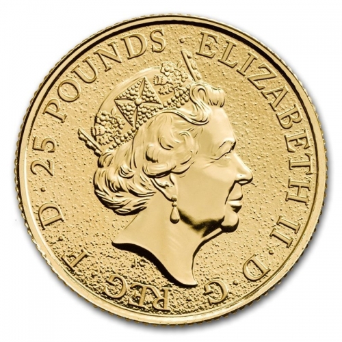 • Реверс: монета изображает коронованного золотого льва Англии, который символизирует сторонников королевского оружия после вступления Джеймса I на престол в 1603 году. Золотой Лев поддерживает щит, показывающий геральдические символы Соединенного Королевства, какие они были со времен начала правления королевы Виктории, с 1837 года. На первой и последней четверти щита геральдический рисунок является символами львов Англии.  Символ Шотландии появляются во второй четверти щита, и арфа Ирландии находится в третьей четверти. Таким образом монета объединяет в своем изображении Королевского Золотого Льва и Геральдический щит Великобритании.